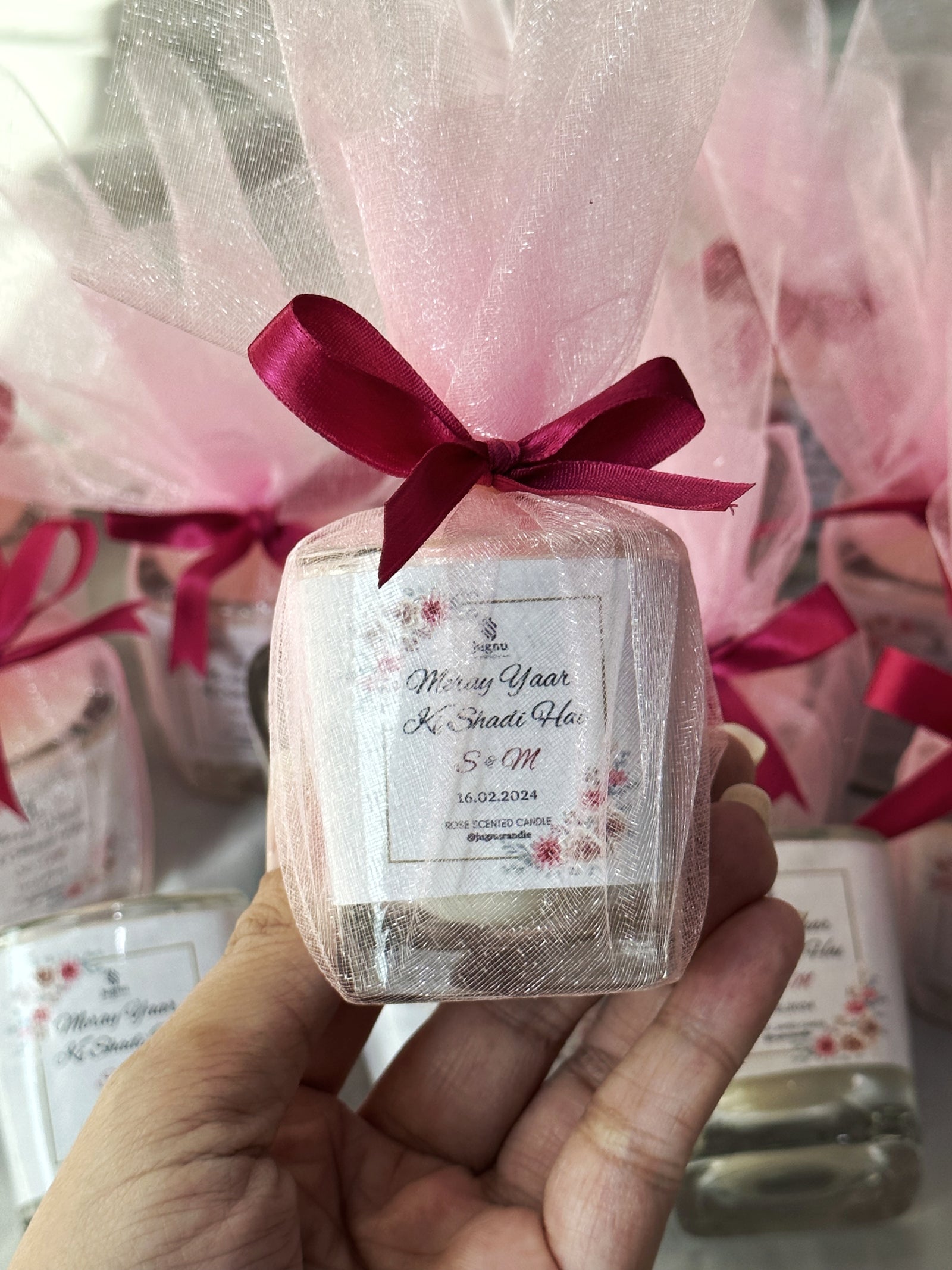 Our completely customizable mini candles are the perfect addition for gift baskets, wedding favours, festive giveaways, and seasonal gifting.